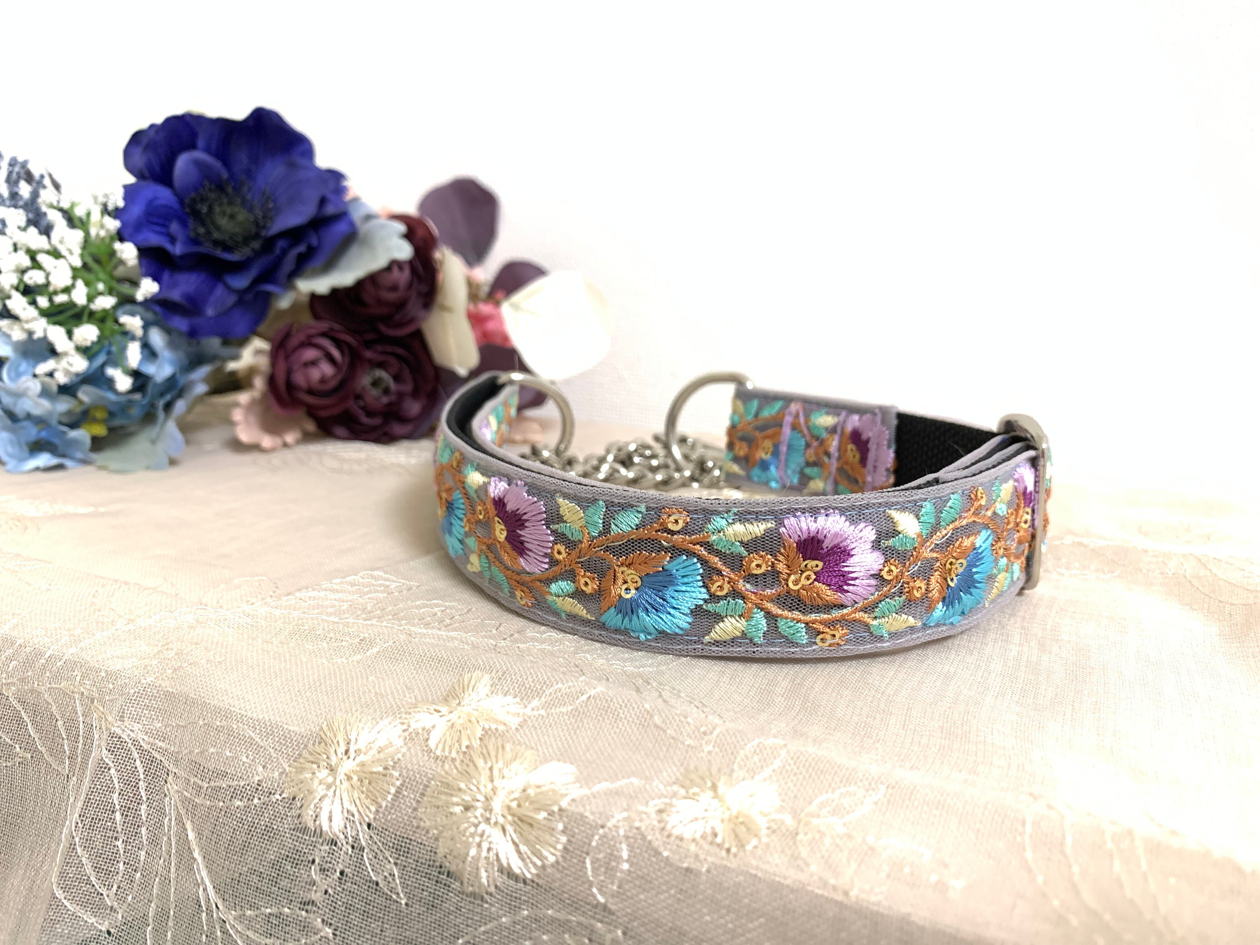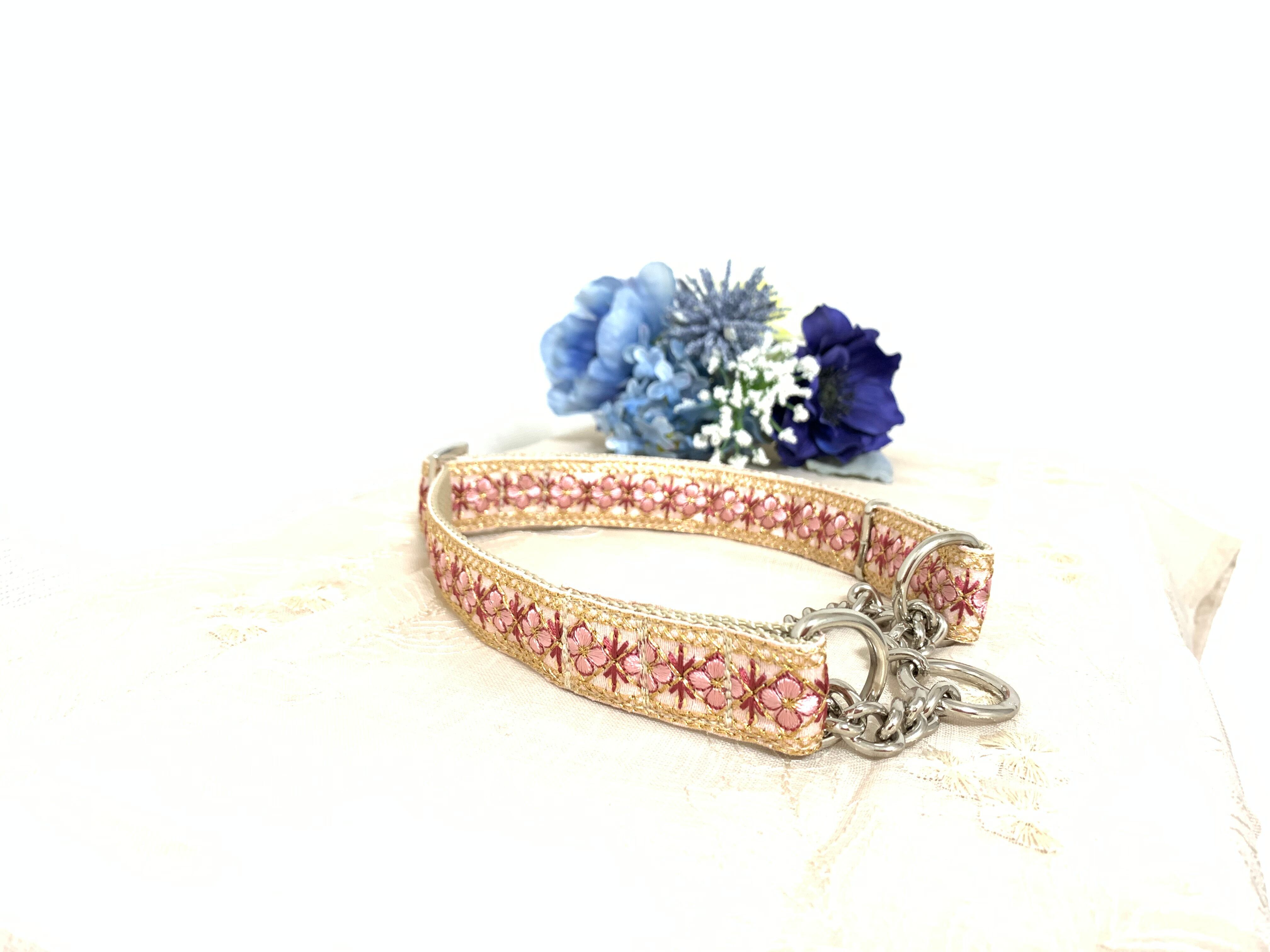 優しいお色目の可愛いインド刺繍テープ の首輪です♪ ✼••┈┈┈┈••✼••┈┈┈┈••✼ こちらは小さいワンちゃんのための シングルDカン仕様です! ★サイズ /幅2.0cm 首周り約20〜30cm ☆使っているリングは、繋ぎ目がなく強度の高いものを使っています。 ☆ベースは、強度のあるPPテープです。 ✼••┈┈┈┈••✼••┈┈┈┈••✼ 【購入前に必ずご確認お願い致します。】 ⚫︎ハンドメイド品にご理解のある方のみご購入お願いします。 ⚫︎カラー(首輪)は、消耗品です。ご使用前には必ず点検してからお使いください。 ⚫︎リボンは点検しておりますが、海外製品のため刺繍のトビホツレ、プリントのズレカスレがある場合もございます。 ⚫︎インド刺繍テープの中には匂いがあるものもございます。気になる場合は、数日陰干ししていただいてからご使用ください。 ⚫︎モニターの環境により実際の色と違って見える場合があります。 ⚫︎万が一の事故などにつきましては保証や責任等は負いかねますのでご了承ください。