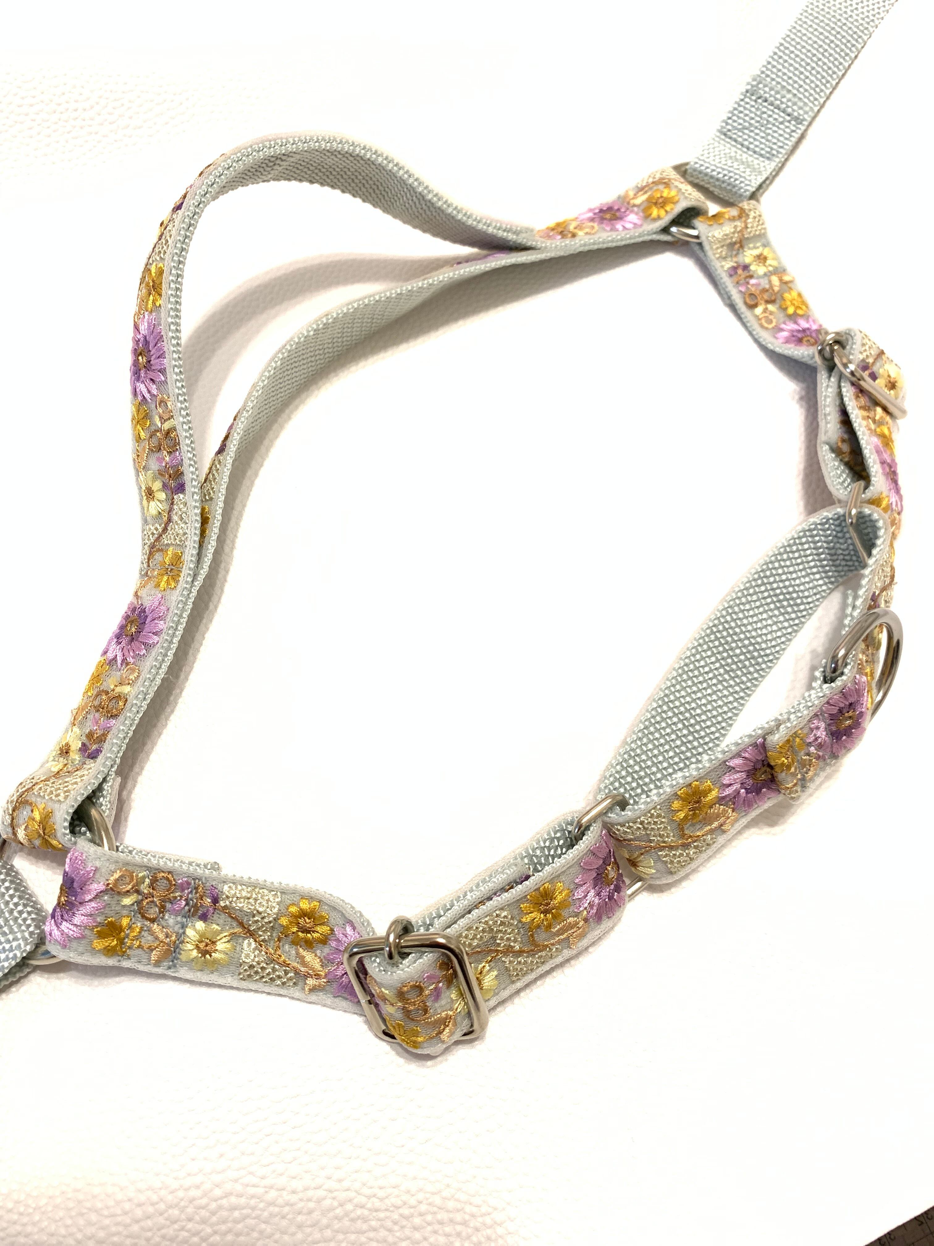 インド刺繍の紫のお花が映える上品なハーネスです。